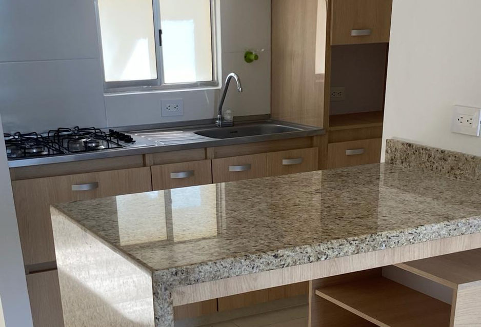 Consta de dos alcobas, un estudio, dos baños, sala comedor, cocina americana, zona de lavandería. parqueadero comunal.